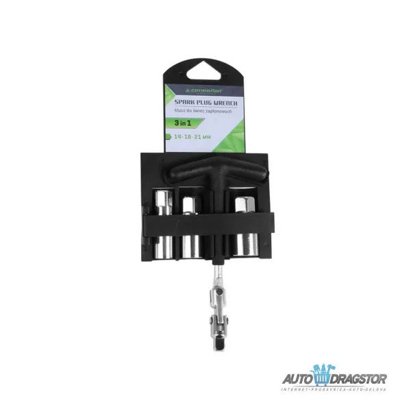 Ključ za svećicu će olakšati zamenu komponenti sistema za paljenje. Set uključuje 3 nastavka: 14mm 16mm 21mm