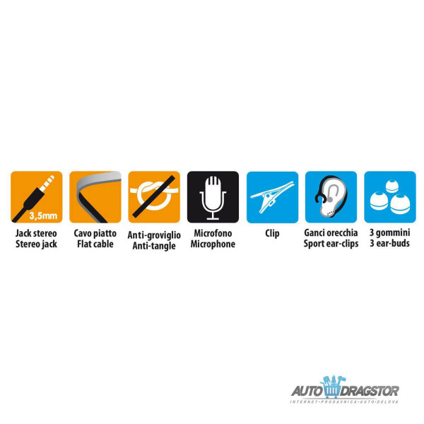 Alumix, stereo slušalice sa mikrofonom 3,5 mm stereo priključak Mikrofon Moćan bas Dinamičan zvuk Sportski držači za uši Antizapetljavajući ravni kabl Klip 3 kompleta silikonskih navlaka za uši Kompatibilne sa iPhone, pametnim telefonima (Android), iPad-om, tabletima (Android), iPod-om, mp3 plejerima, CD plejerima.