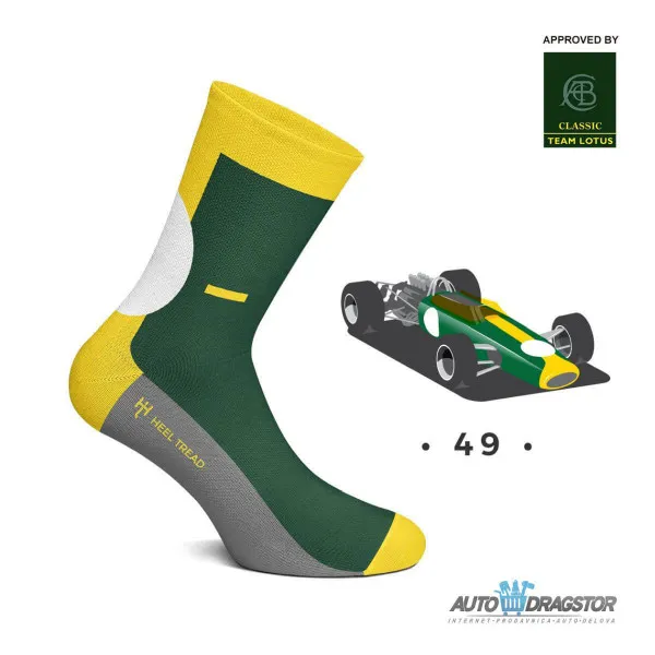 Lotus 49 je bio trkački automobil Formule 1 dizajniran za sezonu F1 1967. godine. Inspiracija za dizajn čarapa bila je Lotusova tradicionalna britanska trkačka zelena sa žutom središnjom prugom. Odobren od strane Classic Team Lotusa
