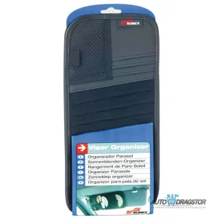 CD organizator koji se montira na vizir (suncobran), održava vašu kokpit tablu urednom od sitnica. Idealno je rešenje sa odlaganje i čuvanje na dohvat ruke vaših CD-a, karti, platnih kartica i naočara. Sastoji se od prostrana džepa i držača za olovke.