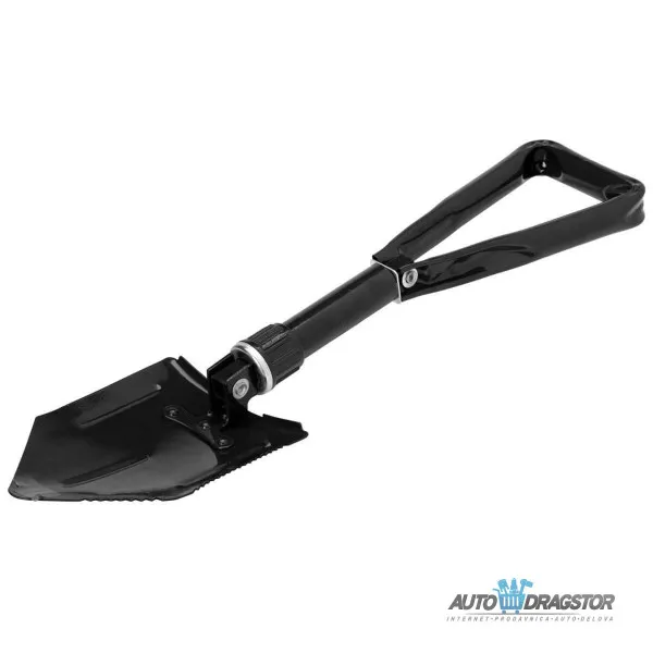 Lopata na rasklapanje u crnoj boji od nerđajućeg čelika u torbici pogodnoj za putovanja. Ova neverovatno postojana i otporna lopata, karakteriše se svojom kompaktnošću i pogodnošću za odlaganje u vozilo, namenjena je za korišćenje iz bilo kojih sigurnosnih razloga, da li to bili uslovi snega, blata, peska ili ostalih nepogoda.