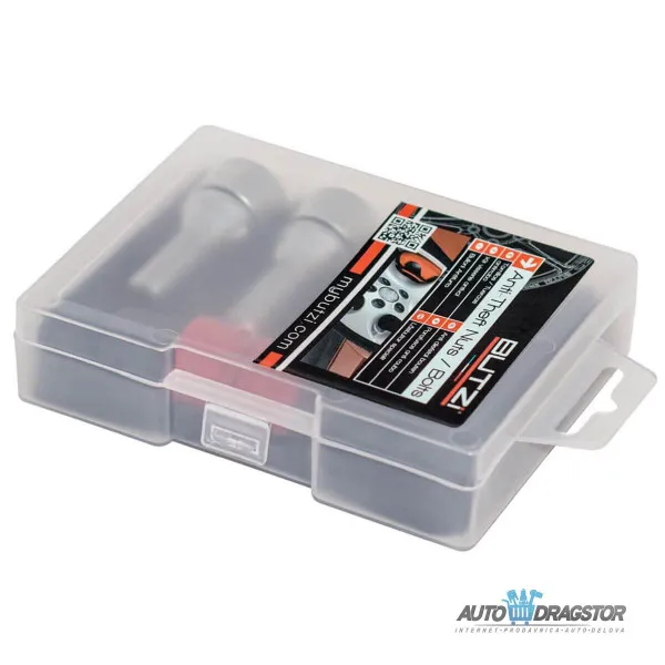 Profesionalna garnitura sigurnosnih navrtki i šrafova sa jedinstvenim ključ adapterom, predviđena je da predupredi krađu i neželjeno skidanje točkova sa vašeg vozila. Šrafovi i navrtke dolaze u 8 različitih modela u zavisnosti od dimenzije i navoja šrafa ili navrtke koja je fabrički predviđena za vaše vozilo, odlikuju se rotirajućom glavom na vrhu šrafa / navrtke. Za odgovarajući odabir, proverite spisak primena odgovarajućeg modela šrafa/navrtke za određeno vozilo. Proizvod je napravljen od materijala visokog nivoa kvaliteta i veoma je postojan, garnitura sadrži 4 komada šrafova/navrtki i odgovarajući adapter ključ.